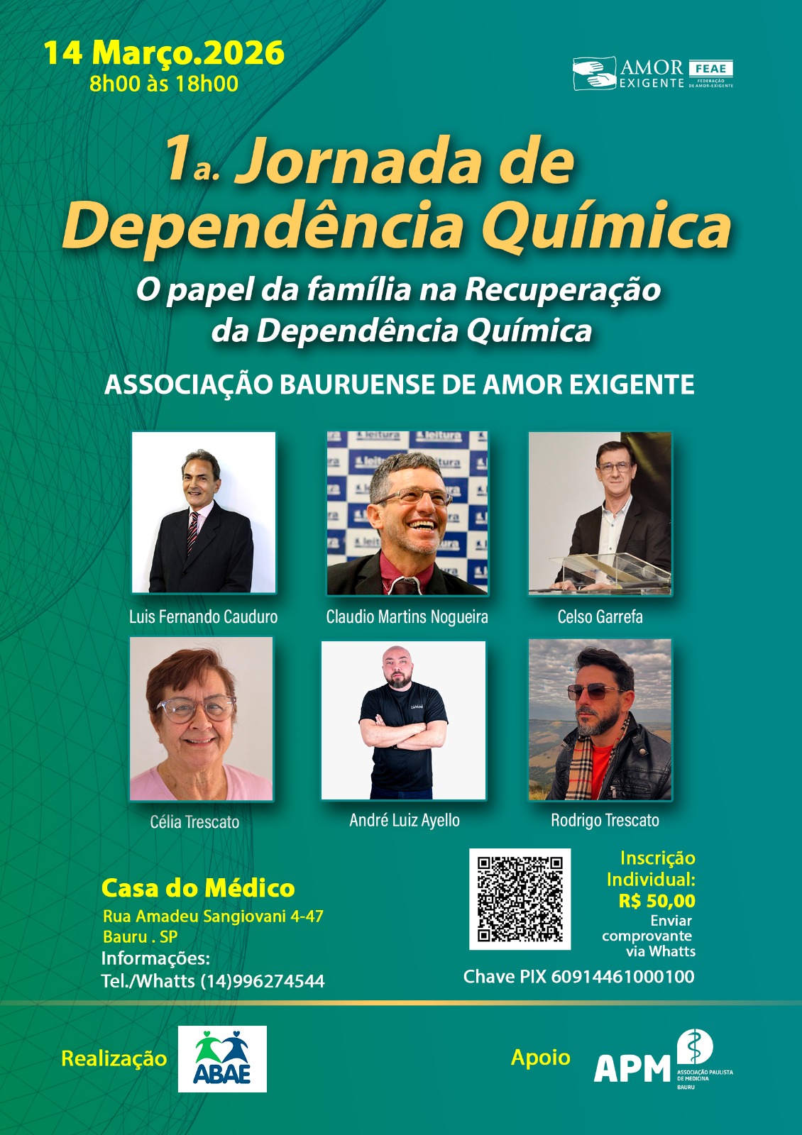 Só chegamos até aqui porque temos muito AMOR e queremos partilhar com vocês as experiências adquiridas ao longo deste tempo. Venha participar conosco deste dia muito especial. DIA: 17/01/2025 HORÁRIO: 09:00h às 17:00H LOCAL: SALÃO NOBRE DA AGRÍCOLA PASTORIL VALOR: R$30,00