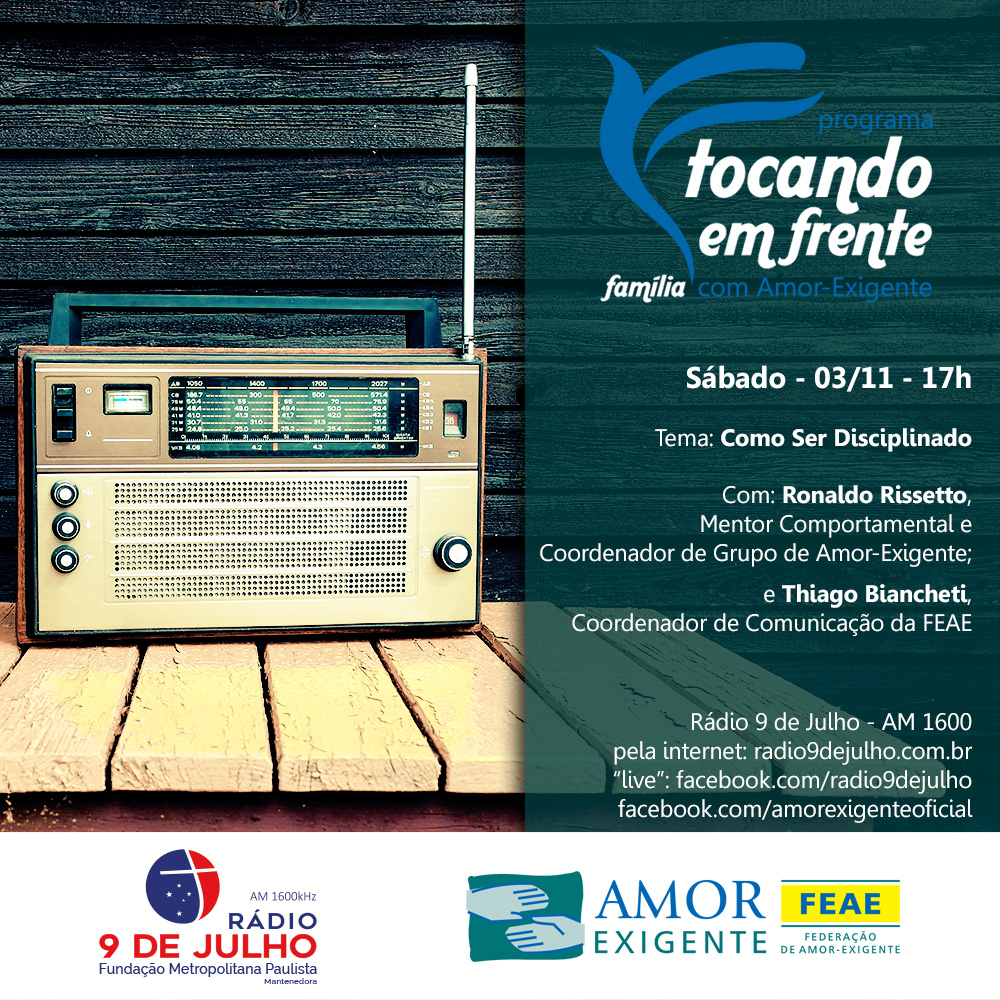 Não perca hoje, no Programa Tocando em Frente Família com Amor-Exigente, dá Rádio 9 de Julho.